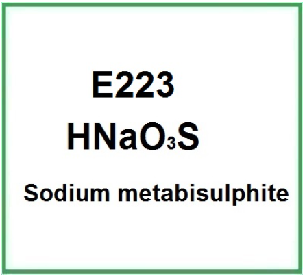 | Sodium metabisulphite | E223 | Na2O5S2 |