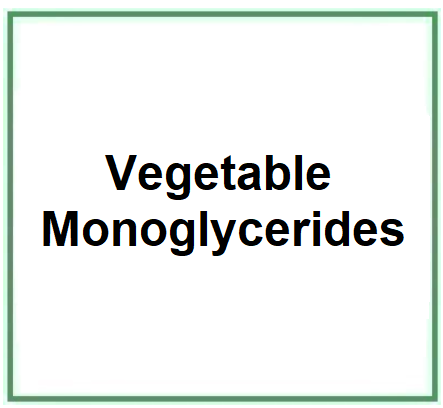 Vegetable Monoglycerides are esters of glycerol and fatty acids and are derived from plant sources such as vegetable oils (such as soybean, canola, sunflower).