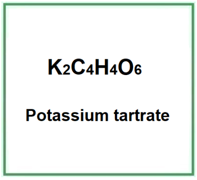 Dipotassium tartrate a potassium salt of tartaric acid and bears the chemical formula K2(C4H4O6).
