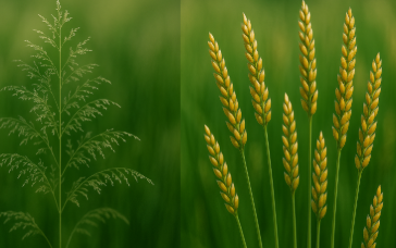 Harvest when panicles are dry and seeds show a uniform colour.