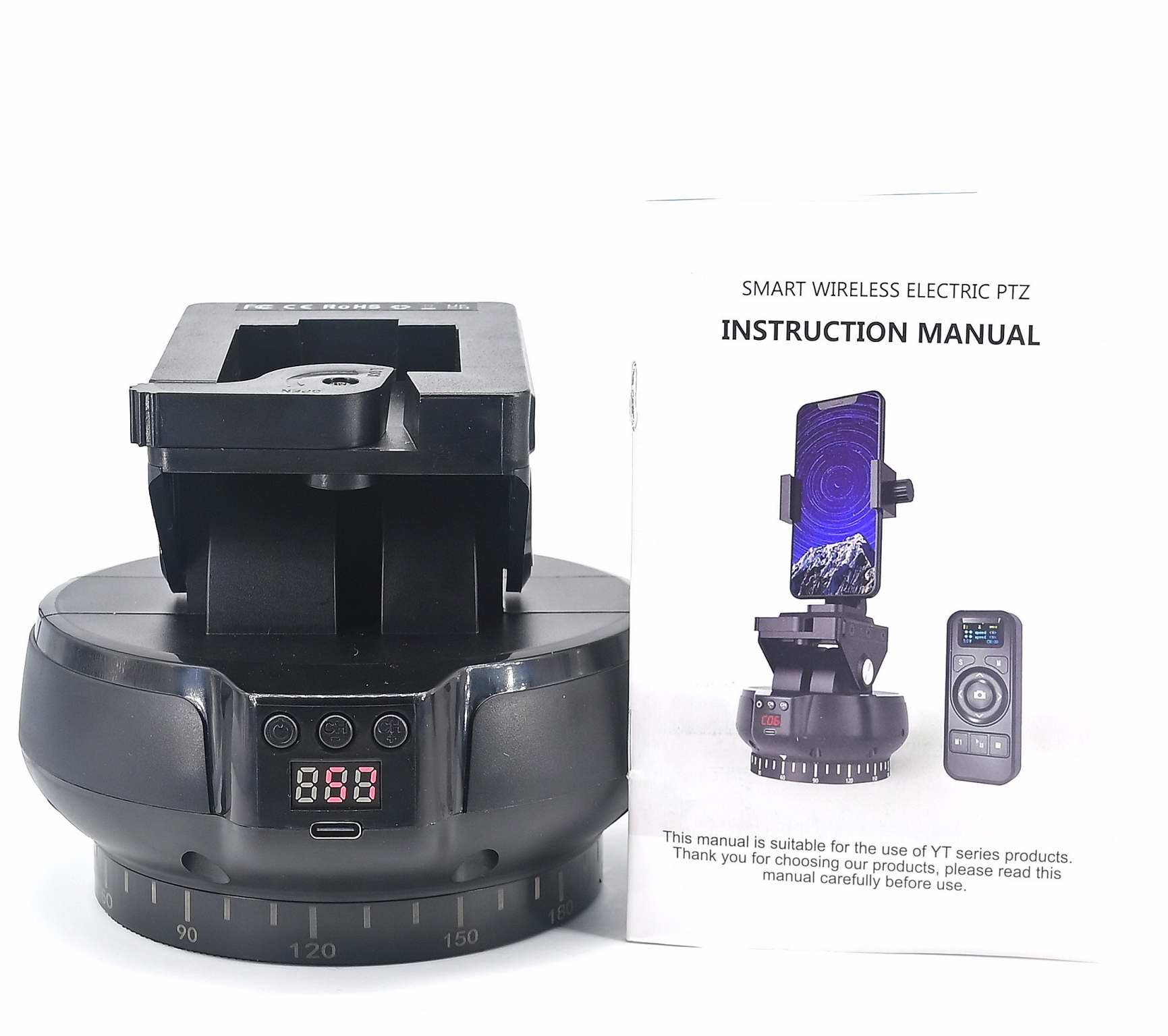 This item is a motorized head (with 1/4" photography screw on the quick release plate) for tripod that allows, via remote control, a camera or smartphone to turn right, left, forward backward. Which is very convenient for live shots, panorama, etc.