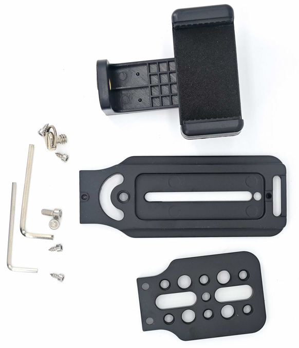 This item allows you to move a camera, camera, smartphone, or any other object that has a 1/4" hole at the bottom for the classic screw used in camera equipment to be clear. The construction is solid and not just plastic, but even pops up a few metal details here and there, such as the side screws that allow swinging.