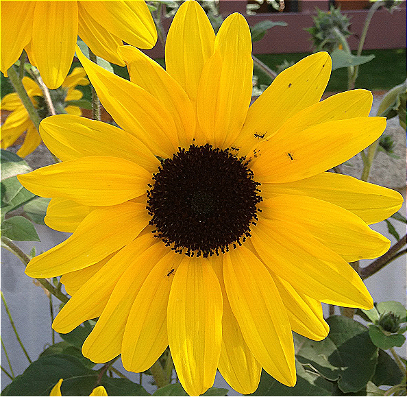Sunflower (Helianthus annuus) is an annual herbaceous plant belonging to the botanical family Asteraceae. It is characterized by a tall, sturdy stem, large heart-shaped leaves and the typical large flower head (capitulum), with bright yellow ray florets on the outside and darker disc florets in the center, from which the achenes commonly known as “sunflower seeds” develop. It is widely cultivated worldwide both as an ornamental plant and as an oilseed crop.