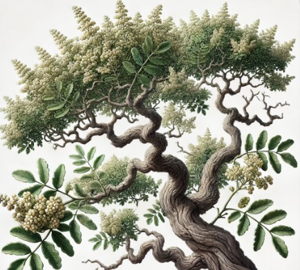 Resin: The tree produces a resin that is harvested by making incisions in the bark. The resin exudes as a gum-like substance and hardens into aromatic, brittle tears.