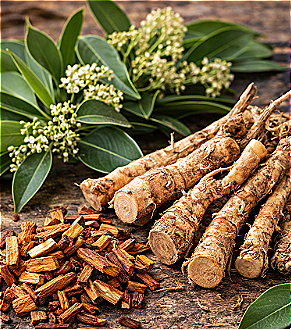 Sandalwood essential oil: rich in sesquiterpene alcohols, particularly santalol, responsible for the characteristic aroma and functional properties.