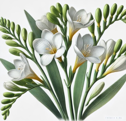 Freesia alba, commonly known as white freesia, is a bulbous plant belonging to the Iridaceae family. Native to South Africa, this species is particularly cherished for its fragrant and attractive flowers, which make a striking addition to any garden or floral arrangement.