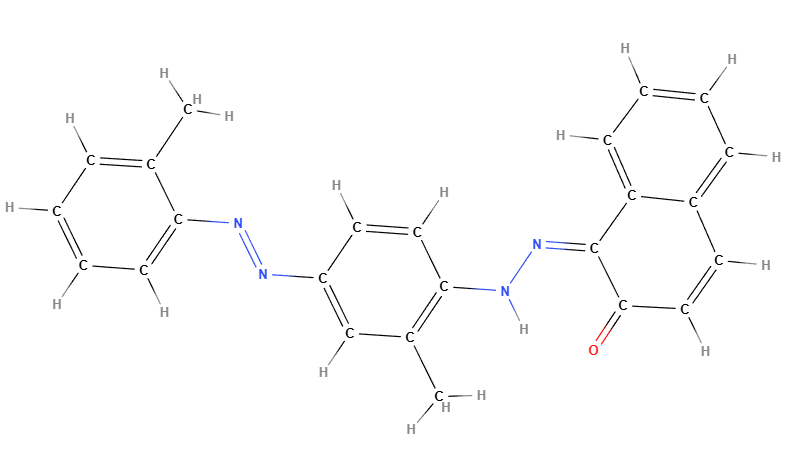 Solvent Red 24, also known as Sudan IV, is a synthetic azo dye primarily used for coloring oils, waxes, plastics, and solvents. It is classified as a Category 2 carcinogen by the European Union, meaning it is suspected of being carcinogenic to humans. A major concern associated with Solvent Red 24 is its ability to release hazardous aromatic amines, such as o-Toluidine, through the cleavage of the azo bond. These aromatic amines are classified as EU22 hazardous substances and are recognized carcinogens. Solvent Red 24 is included in the Screening Assessment for Aromatic Azo and Benzidine-based Substance Grouping Certain Azo Solvent Dyes, as noted in Section 7.2.2 of the report by Environment Canada.