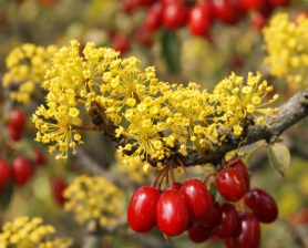 Cornus officinalis is native to China, Korea and Japan, where it grows in hilly and montane forests, woodland margins and areas with adequate soil moisture.