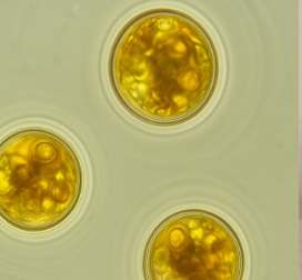 Ruttnera lamellosa is a unicellular golden microalga, surrounded by lamellate mucilage layers, belonging to the haptophyte group of marine microalgae.