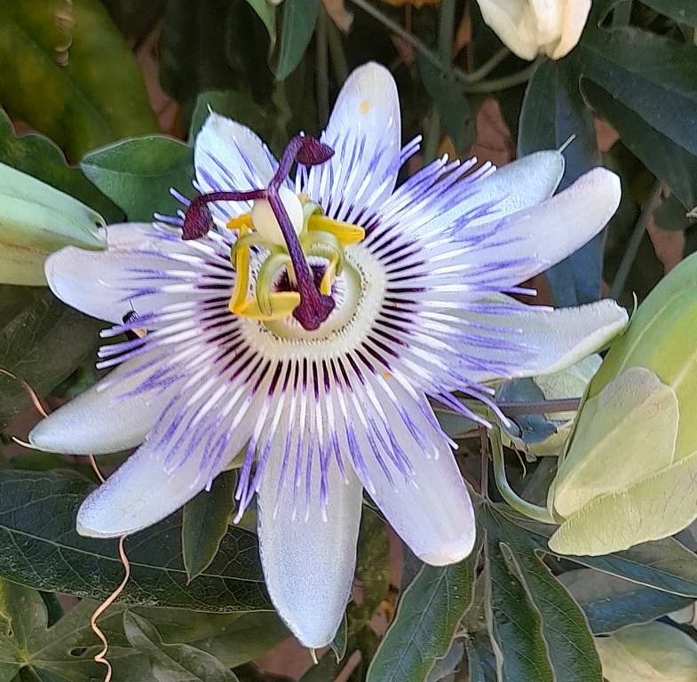 Passiflora incarnata (family Passifloraceae), commonly known as passion flower, is a perennial climbing vine native to the southeastern United States and now cultivated in many temperate and subtropical regions. It is admired for its spectacular, intricate, and aromatic flowers with violet filaments, and for its edible fruits. In herbal medicine, the aerial parts are used for their mild sedative, anxiolytic, and antispasmodic properties. Symbolically associated with calm and harmony, passion flower has long been valued as a natural remedy to ease insomnia and stress.