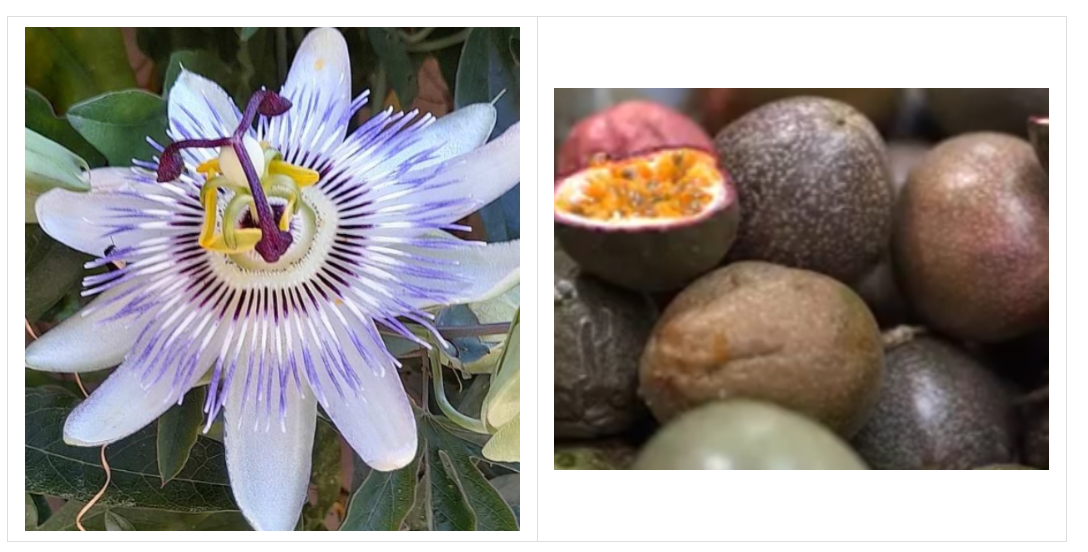 Fruits: Oval yellow-orange berries (“maypops”), containing numerous seeds embedded in a gelatinous, aromatic pulp.