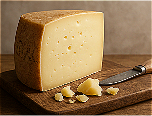 d’Allevo: firmer, drier, gradually granular with age; tiny/irregular eyes; nutty–savory with a gentle piquant finish in longer maturations.