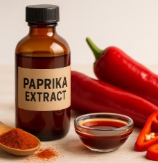 Colorante/aromatizzante naturale ottenuto dai frutti maturi essiccati di Capsicum annuum (paprika), tramite estrazione di fase lipidica (oleoresina) e successive standardizzazioni. Conferisce tonalità rosso–arancio con profilo aromatico dolce–speziato e bassa piccantezza (capsaicinoidi ridotti).