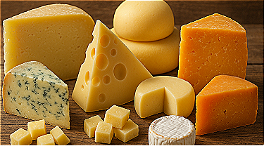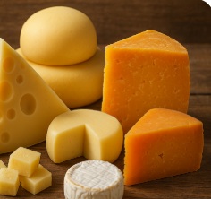 (fermented and/or coagulated food from cow/sheep/goat/buffalo milk; families include fresh, soft, semi-hard, hard, and pasta filata cheeses)