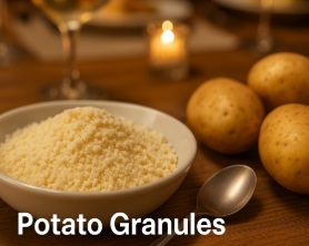 Commonly used as a base or texturizer in mashed potatoes, snacks, bakery items, soups, and industrial recipes.