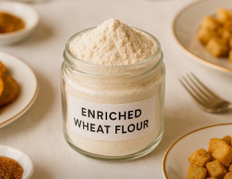 Enriched wheat flour is a consistent, high-functionality baking ingredient fortified with iron and B-vitamins to support nutritional adequacy. It delivers reliable dough formation, fermentation performance, and crumb structure across a wide range of bakery and culinary applications when stored and handled correctly.