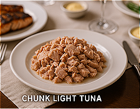 Chunk light tuna is a canned tuna category where the flesh is packed as small pieces (chunks) rather than intact loins or “solid” pieces.
