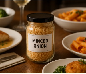 Minced onion is a highly versatile ingredient providing aroma, sweetness, moisture, and flavour complexity. Fresh, frozen, and dehydrated forms support a wide range of culinary and industrial applications. With low caloric value and significant sensory impact, it helps enhance flavour while limiting the need for salt. A well-managed supply chain ensures quality, hygiene, and sustainability across formats.