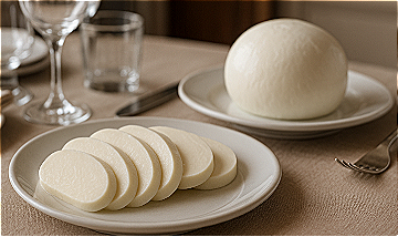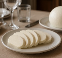 It maintains the characteristic mild, milky flavour and elastic, stringy texture of mozzarella, with lower fat content and slightly firmer body.
