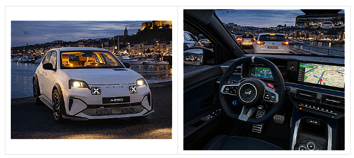 The Alpine A290 is a fully electric hot hatch (5 doors, 5 seats) that brings Alpine DNA into the sporty compact segment: a focused chassis setup, suitably sized braking hardware (with “Alpine-style” solutions), dedicated driving modes, and a more driver-focused tuning than the Renault 5 E-Tech from which it derives its architecture. The goal is a modern small performance car with instant torque, strong precision on twisty roads, and up-to-date technology (infotainment with integrated Google services, comprehensive ADAS) while preserving everyday usability typical of a B-segment hatchback.