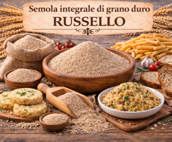 In the specific case of Russello, the raw material derives from Triticum durum (botanical family Poaceae), an ancient Sicilian population/traditional variety, known for its territorial link and for technological characteristics different from many modern durum wheats.